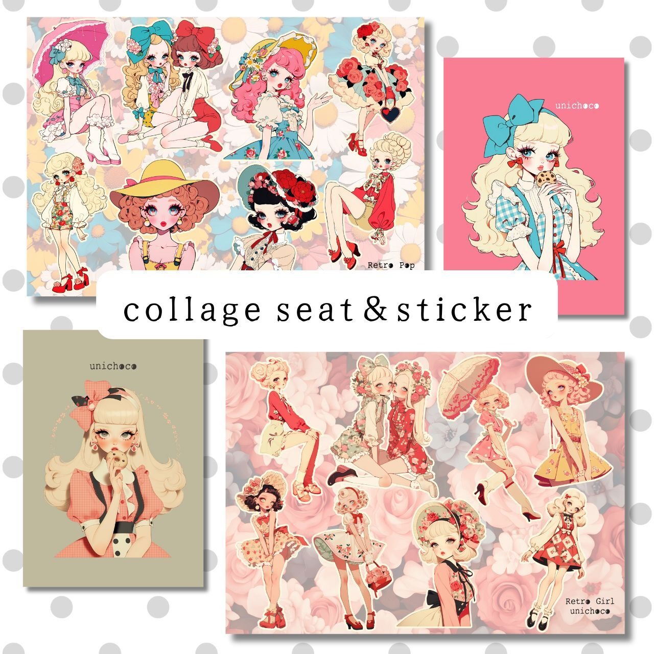 レトロガールちゃん&レトロポップちゃんのコラージュシート2種を作りました!